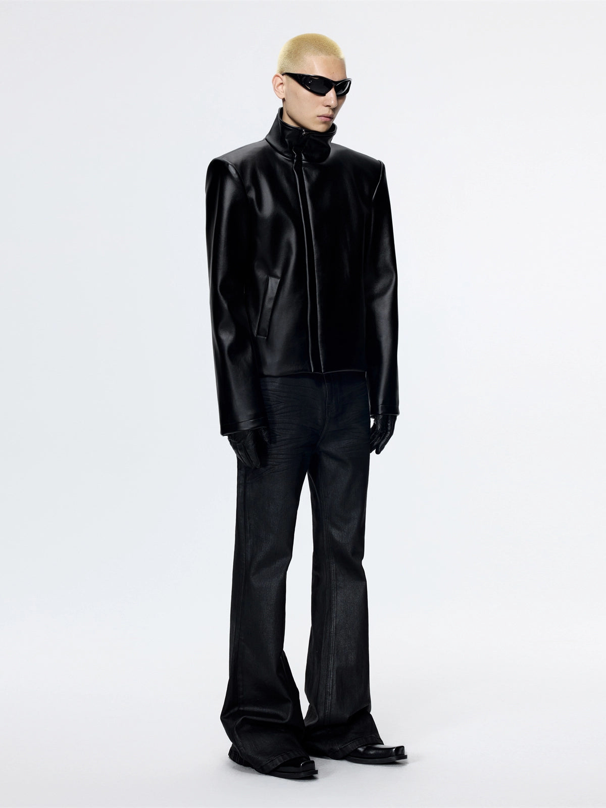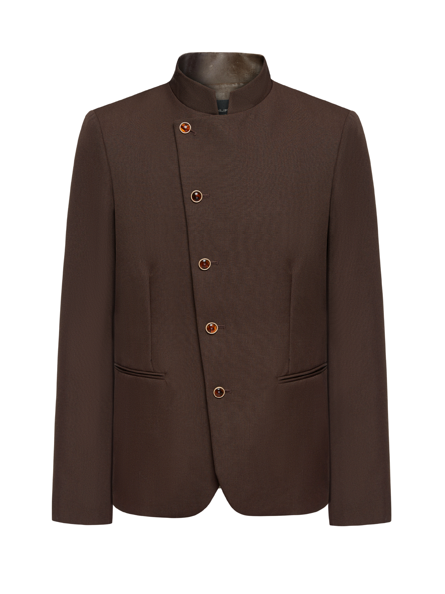 OWNLIFE Wool Stand Collar Fog Leather Amber Buckle Jacket - JAMES.