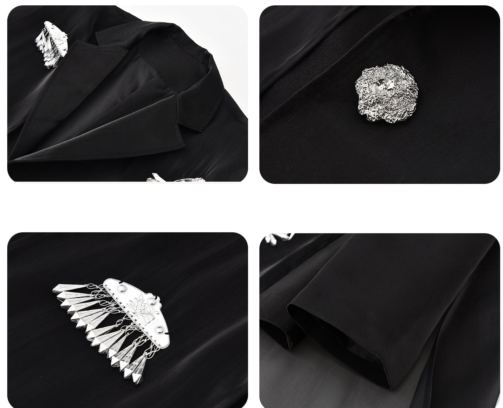 The blazer embodies high-end national style with its sleek black design and loose, casual fit. Combining traditional Chinese elements with modern tailoring, this blazer offers both comfort and sophistication. Its versatile silhouette makes it an impeccable choice for elevating everyday ensembles with timeless elegance.