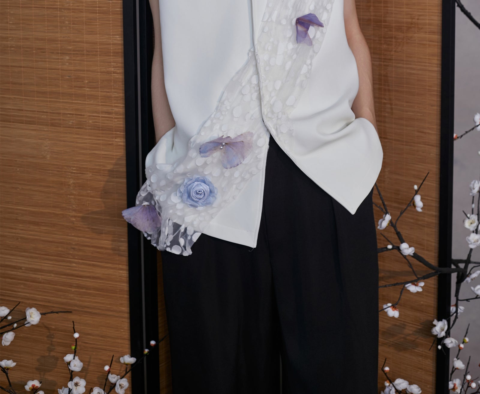 JIECHI white loose sleeveless applique vest- ORLANDO.
