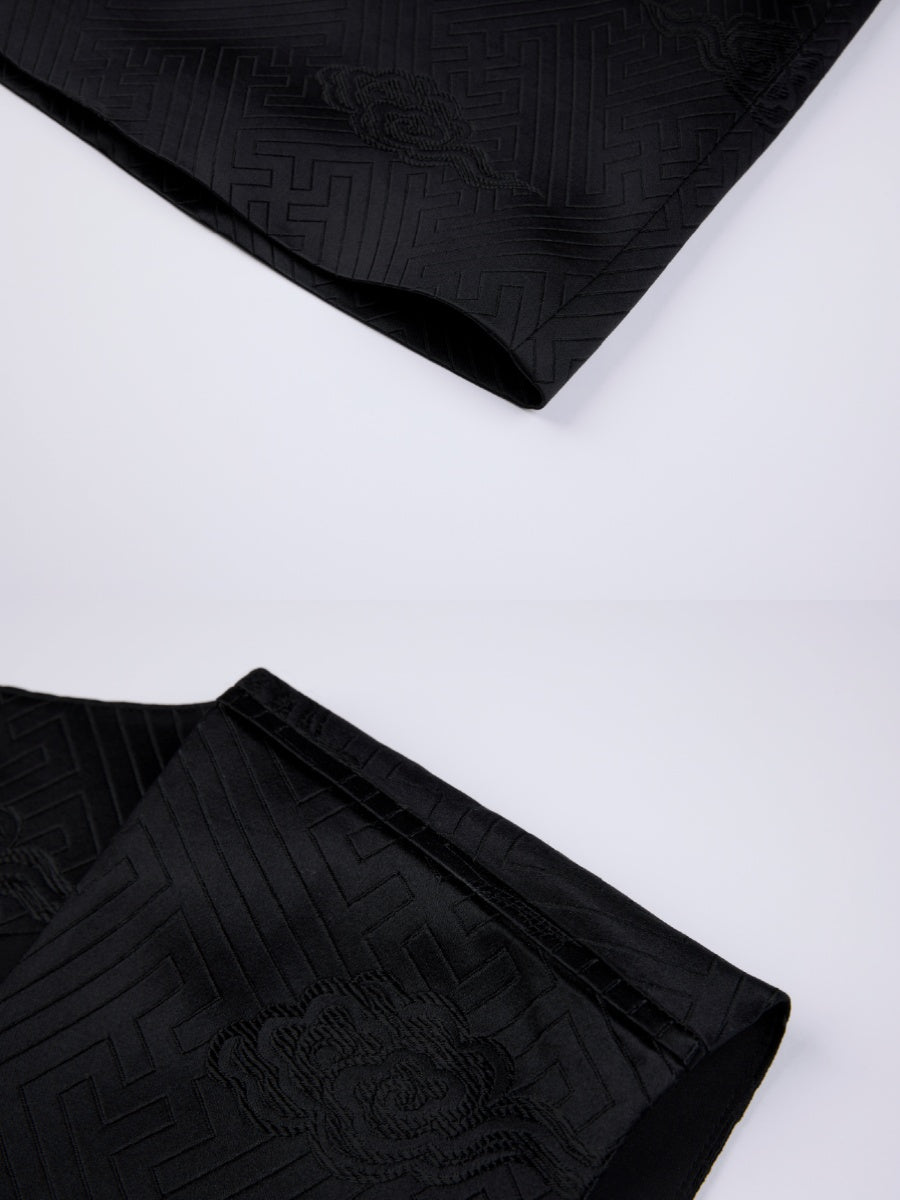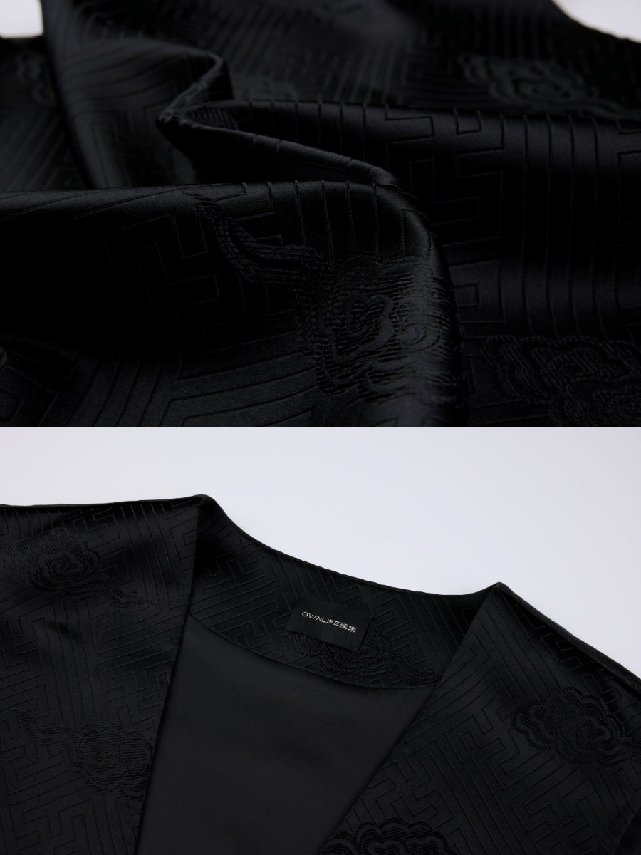 Elevate your wardrobe with the silk brocade vest, featuring a refined swastika cloud pattern that subtly blends tradition and modernity. Crafted from luxurious silk, this V-neck piece offers a distinguished silhouette and a smooth, comfortable fit. Perfect for those who appreciate understated elegance and expert craftsmanship, it adds a unique cultural touch to any ensemble with lasting sophistication. SIZE GUIDE(CM)