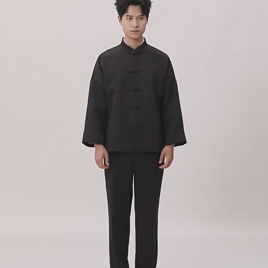 OWNLIFE jacquard stand collar black coat - BARRY.